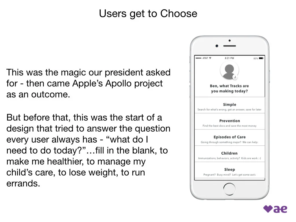 Our job at Aetna was to turn a 200 digital property company into a single customer facing app. Aetna is becoming a software company.