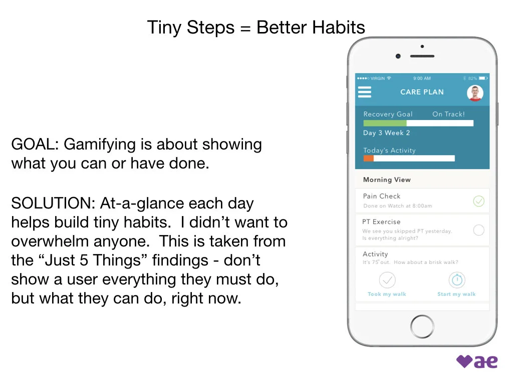 Things is, users don’t know what they need to create a better habit and the healthcare system is sorely miscalculating the importance of personal effort vs. practicing standard of care. One is for a user the other is for the doctor.